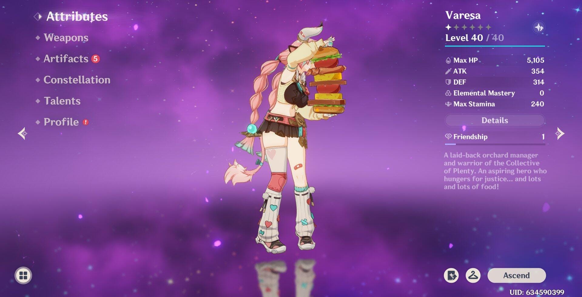 I am SO HAPPY with this account, like honestly. I had recieved a total of 290 pulls worth of primogems, and also had 59 limited pulls, and 97 standard pulls. With my gambling, I got Xilonen, Diluc, Mizuki, and Jean, and also Amos Bow, and the Skyward Blade. I'm trying to get C6 Diluc now..I just love him..but I am waiting for the next banner to keep gambling! I forgot to take a picture of all my good pulls, but I have a few that surprised me lol. I also got Ifa which made me happy, I know he is a 4* but he is so handsome.