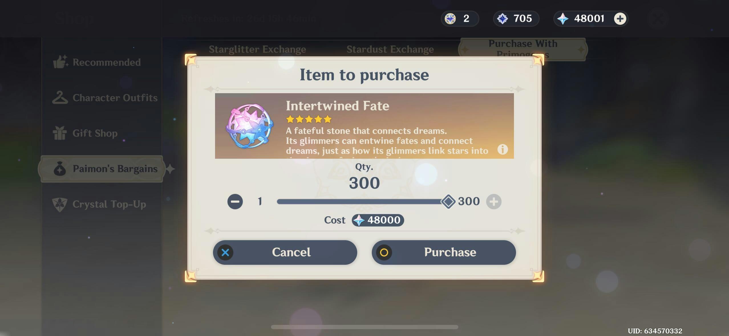 - This listing is for a Genshin Impact account with the Primogems and Fates shown on this page's product image.