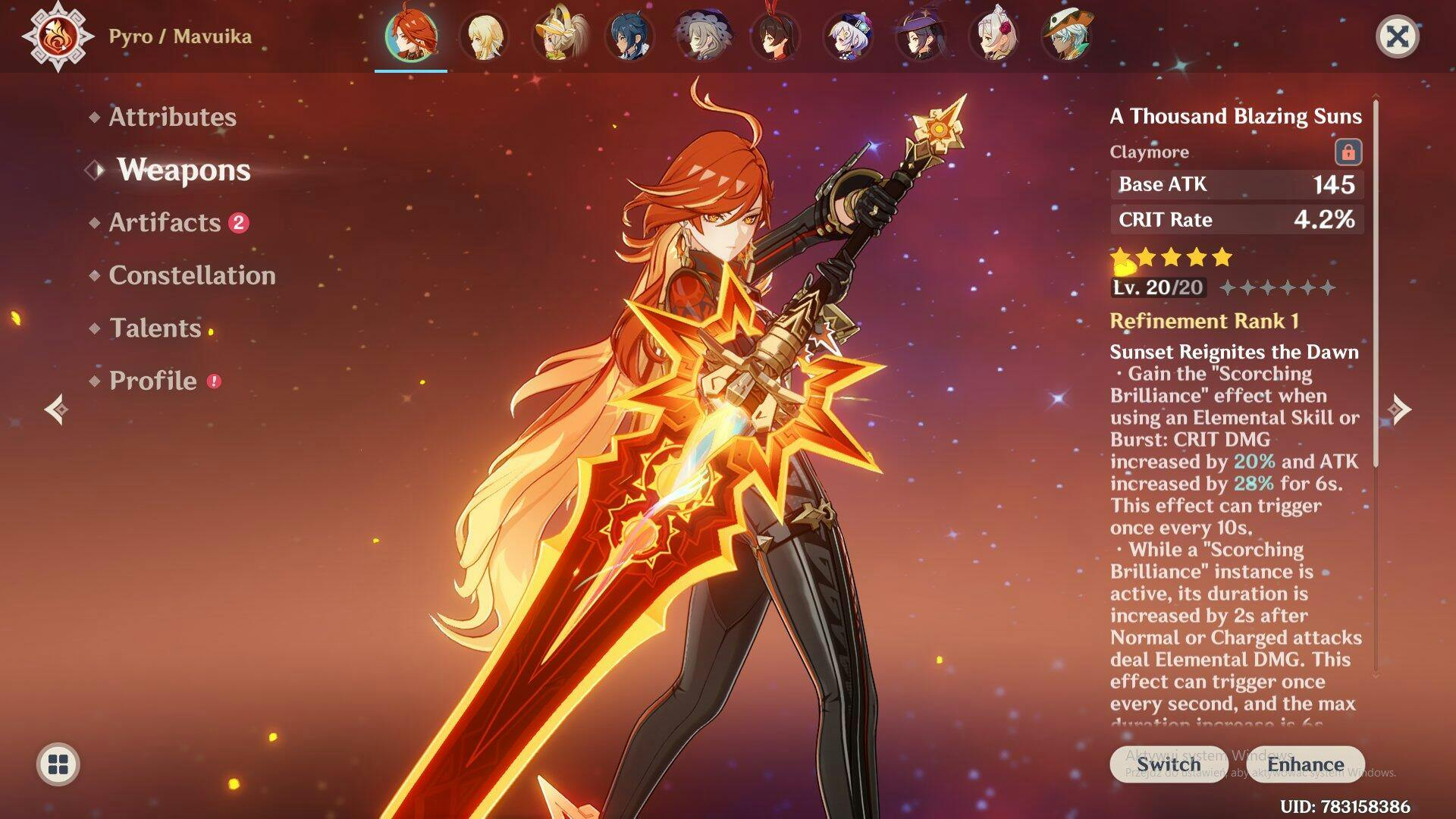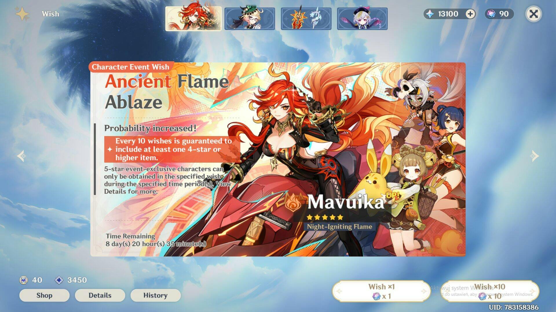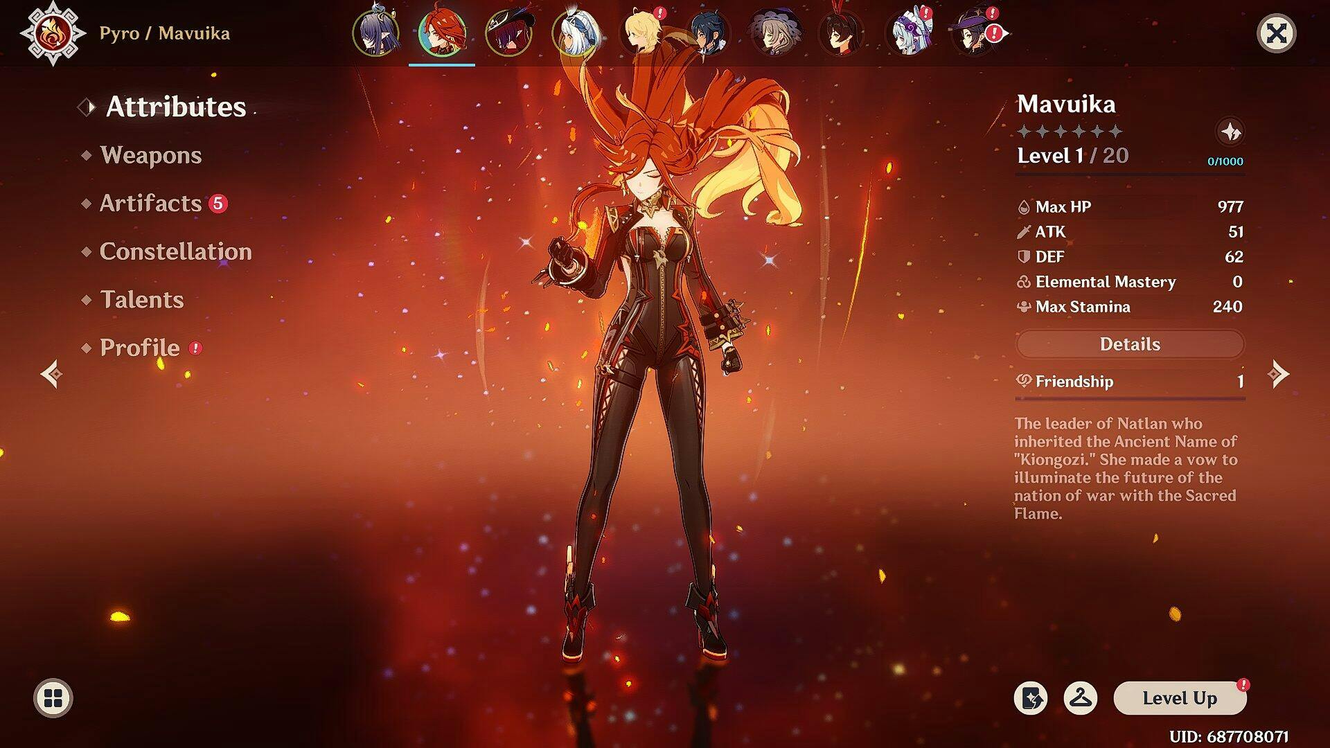 This is a Genshin Impact reroll account featuring Mavuika on your chosen server: